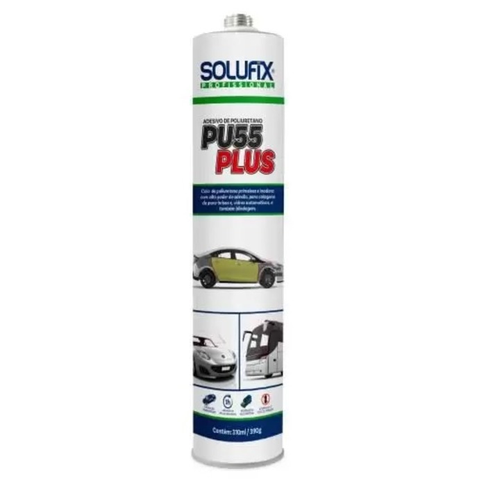 O Solufix PU55 Plus é um adesivo monocomponente de poliuretano de alta performance, desenvolvido especialmente para aplicações em colagem de para-brisas e vidros automotivos. Sua fórmula avançada proporciona excelente adesão em superfícies de vidro e metal, mesmo sob condições severas, garantindo segurança, resistência e durabilidade na instalação.